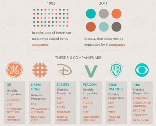 Το παρακάτω infographic (αυτουνού) δείχνει γλαφυρά τη συγκέντρωση της ενημέρωσης και της ψυχαγωγίας στα χέρια μιας χούφτας πολύ μεγάλων εταιριών. Αυτό (και όχι μόνο στα media -σε όλες τις αγορές) δεν είναι ποτέ καλό πράγμα.