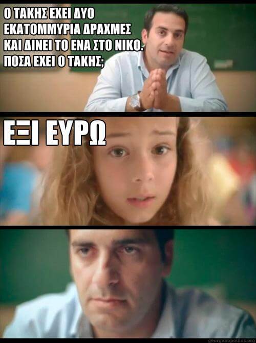 Στις επανηλλειμένες ερωτήσεις του παιδιού δεν απαντάει. Πολύς κόσμος υποθέτει πως είναι επειδή ντρέπεται, ξέρω γω. Μπορεί όμως να μην απαντάει επειδή δεν ξέρει, και το κλιπ της Νέας Δημοκρατίας να είναι μια κριτική προσέγγιση στην κρίση της παιδείας μας. Μπορεί.