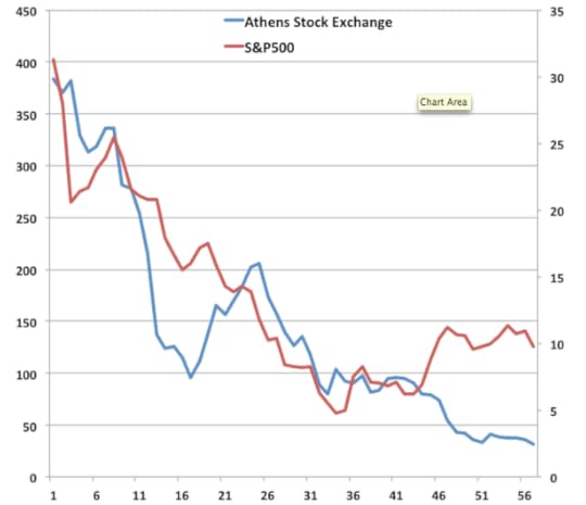 Κατά τη διάρκεια της ύφεσης του Μεγάλου Κραχ στις αρχές της δεκαετίας του ‘30, ο δείκτης S&P 500 του χρηματιστηρίου των ΗΠΑ έφτασε να χάνει μέχρι και 85% από τα ιστορικά ψηλά του. Αυτός ήταν ο πάτος. Χτες το Χρηματιστήριο Αθηνών έχανε 88% από τα ιστορικά ψηλά του. Μπορείς να διαβάσεις αυτήν εδώ την ανάλυση άμα θες, αλλά το συμπέρασμα είναι προφανές.