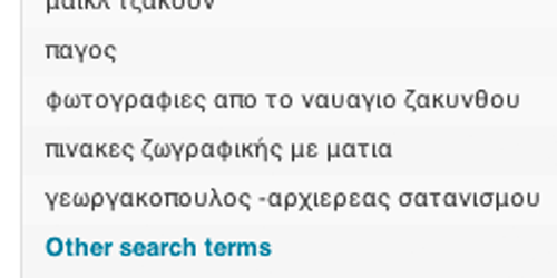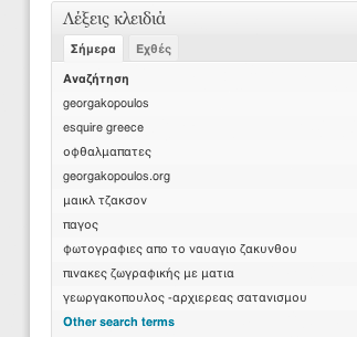 Πότε πότε κοιτάζω στα στατιστικά ετούτου εδώ του site τι ψάχνει ο κόσμος στις μηχανές αναζήτησης και καταλήγει εδώ. Τις προάλλες λοιπόν: