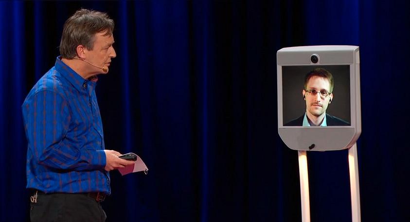 Ο άνθρωπος που αποκάλυψε την έκταση των μυστικών παρακολουθήσεων των ψηφιακών επικοινωνιών απλών πολιτών από την NSA ζει κυνηγημένος στη Ρωσία, αλλά χτες μίλησε στο TED με τη μορφή ενός γελοίου ρομπότ. Είναι ένα σοβαρό θέμα, κι αυτή είναι μια σημαντική συνομιλία του με τον curator του TED Κρις Άντερσον και, αργότερα, με το δημιουργό του www Τιμ Μπέρνερς Λι.