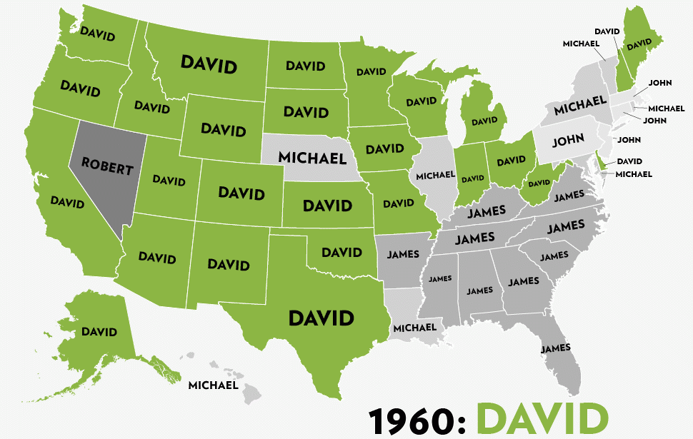 Από πάνω, τα πιο συνηθισμένα ονόματα κοριτσιών ανά πολιτεία των ΗΠΑ κατά την πάροδο του χρόνο. UPDATE: Και εδώ, τα ονόματα των αγοριών: