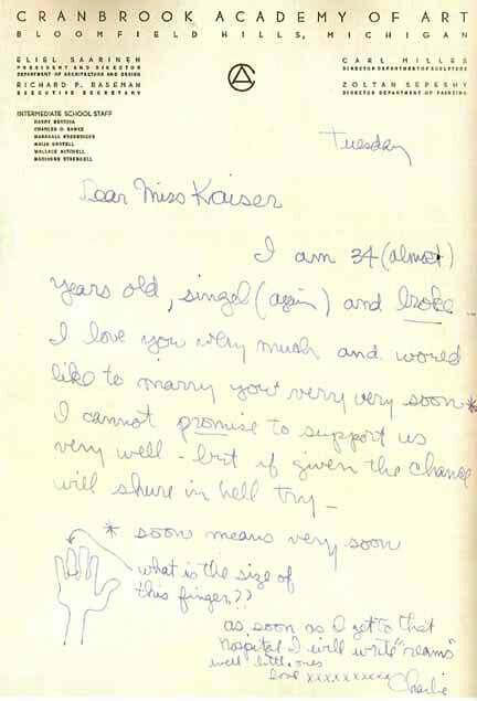 Εδώ, ο θρυλικός designer Τσαρλς Ήμς, στα 34 του, χωρισμένος και φτωχός, γράφει λόγια στη μετέπειτα σύζυγο και συνεργάτη Ρέι Κάιζερ: