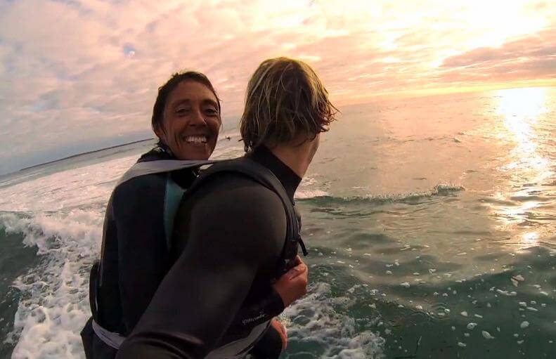 Η ιστορία της Πασκάλ που είναι παραπληγική και κάνει σερφ κολλημένη στην πλάτη ενός φίλου των γιών της με ταινία είναι πολύ συγκινητική -αν δεις το βίντεο και δε βουρκώσεις, κάτι δεν πάει καλά και να το κοιτάξεις- μα το πιο ωραίο ξέρεις ποιο είναι; Το πρόσωπό της όταν τσουλάει στο νερό. Έτσι μοιάζει η αγνή, σκέτη, ανόθευτη χαρά.