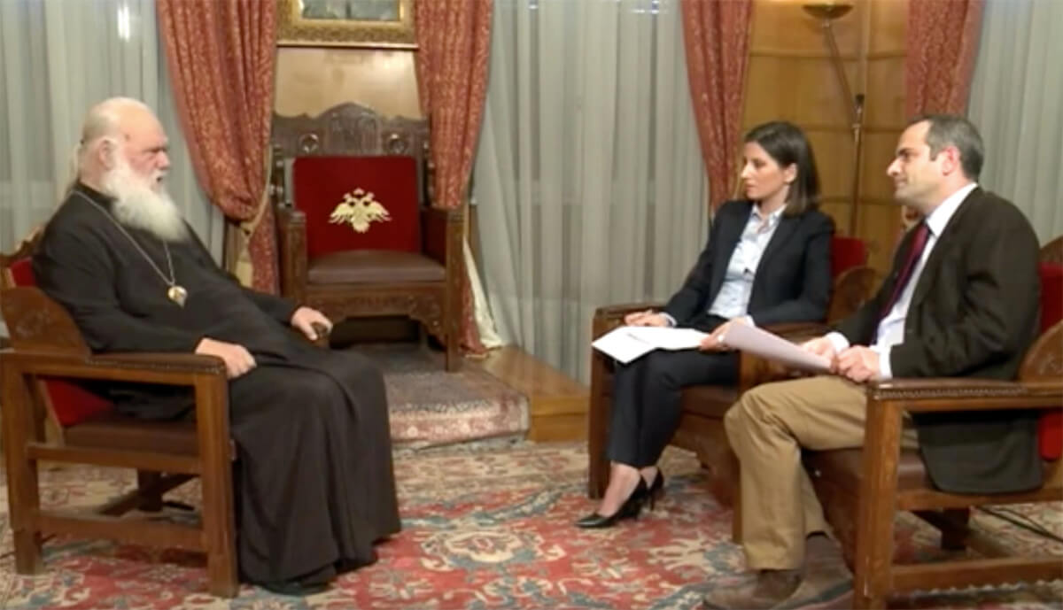 Εχτές δημοσιεύτηκε αυτή η συνέντευξη του αρχιεπισκόπου, που είναι ο αρχηγός των εκκλησιαστικών πραγμάτων στην Ελλάδα (δεν ξέρω το οργανόγραμμα ακριβώς), στην ενημερωτική εκπομπή του ΣΚΑΙ "Η Ελλάδα στον Καθρέφτη", που είχε για θέμα αυτή την έρευνα. Δεν την είχα δει προηγουμένως. Σας προτρέπω να τη δείτε. Αναφέρεται σε πολλά θέματα, στην καύση νεκρών, στο γάμο των ομοφυλοφίλων, στη μετανάστευση, στην εκκλησιαστική περιουσία, και λέει κατά τη γνώμη μου αναπάντεχα πράγματα, με αναπάντεχο τρόπο.