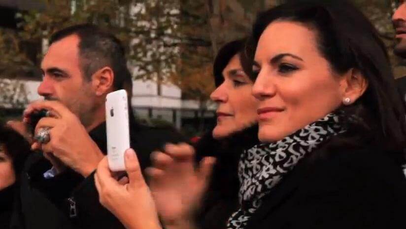 Σε κάποια σημεία του βίντεο, δύο αν μέτρησα καλά, εμφανίζεται η ελληνίδα υπουργός τουρισμού Όλγα Κεφαλογιάννη. Το ότι βάζει τον εαυτό της στο βίντεο που χρηματοδοτεί οργανισμός που διευθύνει λέει κάτι για την αισθητική ποιότητα και την ηθική υπόσταση του εγχειρήματος, αλλά τέλος πάντων, δεν είναι αυτό το θέμα μου. Το θέμα είναι ότι σε μία από αυτές της εμφανίσεις, η υπουργός κρατά ένα κινητό τηλέφωνο με το οποίο φωτογραφίζει (θέλω να ελπίζω ότι δεν βιντεοσκοπεί, γιατί το κρατά όρθιο) τα τεκταινόμενα. Το κινητό τηλέφωνο είναι ένα iPhone. Μα είναι ένα ολοκαινουριο, πανάκριβο και πολυτελές iPhone 5; Όχι! Είναι ένα περυσινό μοντέλο, ένα iPhone 4S ή έστω ένα iPhone 4 του 2010; Ούτε! Δες: