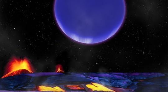 Εδώ βλέπεις πώς φαίνεται ο πλανήτης Kepler 36c από την επιφάνεια του Kepler 36b. Πρόκειται για δυο πλανήτες που γυρνάν γύρω από ένα αστέρι 1200 έτη φωτός μακριά. Βρίσκονται υπερβολικά κοντά στο αστέρι τους για να μπορούν να έχουν μορφές ζωής απάνω τους (πολλή ζέστη), αλλά το περίεργο είναι το ότι είναι πάρα πολύ κοντά και μεταξύ τους. Αν και πολύ μεγάλοι σε μέγεθος, απέχουν περίπου πέντε φορές την απόσταση της σελήνης απ’ τη Γη.