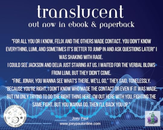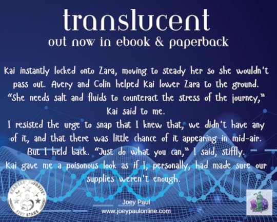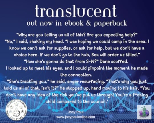 [ID: A blue DNA background with the title TRANSLUCENT at the top and out now in ebook & paperback just below the title The except reads: