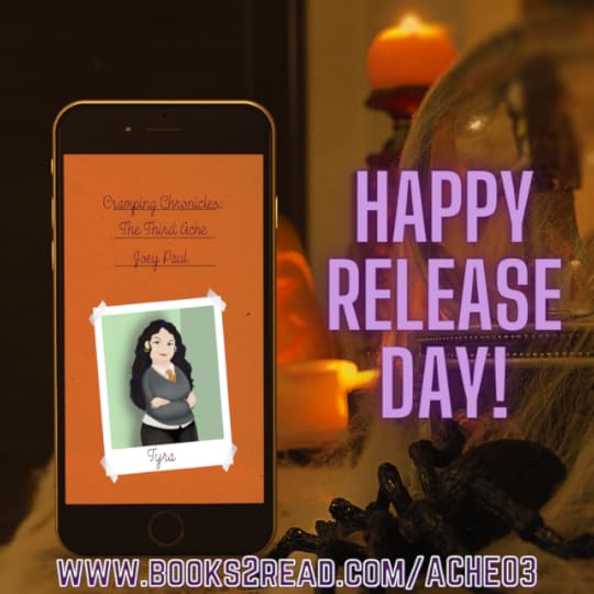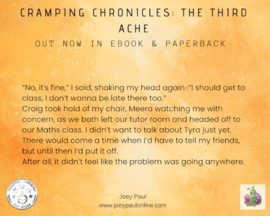 [ID: An orange background with the title CRAMPING CHRONICLES: THE THIRD ACHE at the top and out now in ebook & paperback just below the title The except reads: