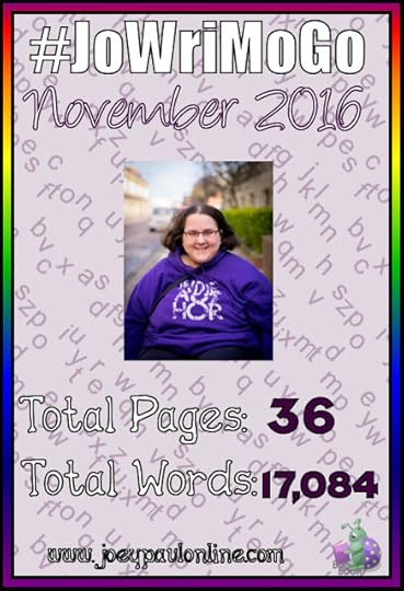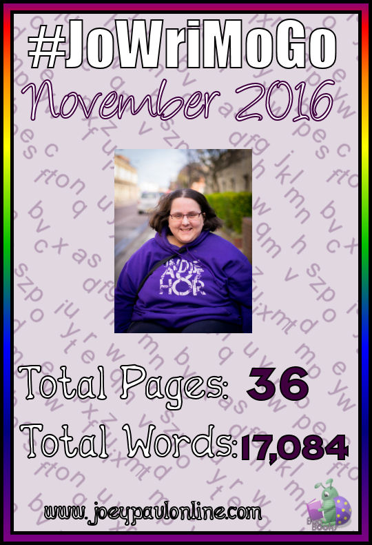 The final tally for November 2016 is: 36 pages, 8 chapters and 17,084 words! Considering I have pneumonia and spent a week in hospital I think that's pretty good. Here's hoping the year ends with a higher count!