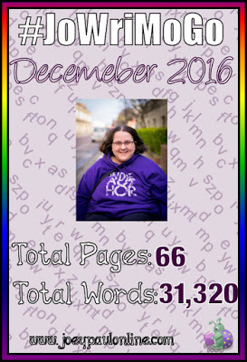 The final tally for December 2016 is: 66 pages, 31,320 words and 15 chapters! Two books finished, two more started and a great way to finish off the year and start the next one!