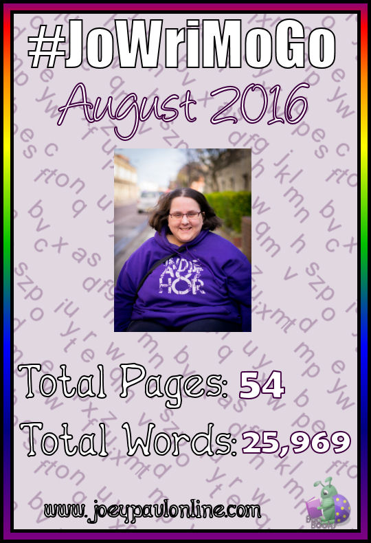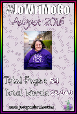The final tally for August was: 54 pages; 25,969 words and 12 chapters written!! Here's to hoping September is even better!