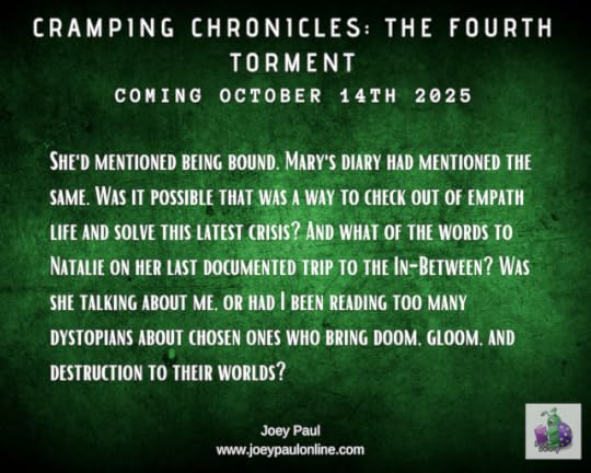 SIGN UP FOR AN ARC OF CRAMPING CHRONICLES: THE FOURTH TORMENT: https://forms.gle/ewxNcsPbLkCgKtNAABUY SIGNED BOOKS AT MY KO-FI SHOP: https://ko-fi.com/authorjoeypaul/shopBUY DYING THOUGHTS - THIRD WISH IN AUDIOBOOK: http://www.books2read.com/DTTW