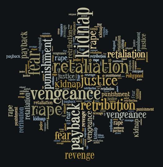 To the right is a word cloud depiction of what has driven, and continues to drive, the villain to kidnap, torture and rape - and it's all done in the name of justice.