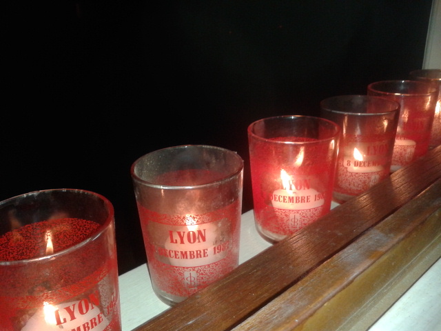 Candles on my windowsillEvery year the city of Lyon celebrates la Fête des Lumières - an international light festival to celebrate the end of the black plague in this region of France.