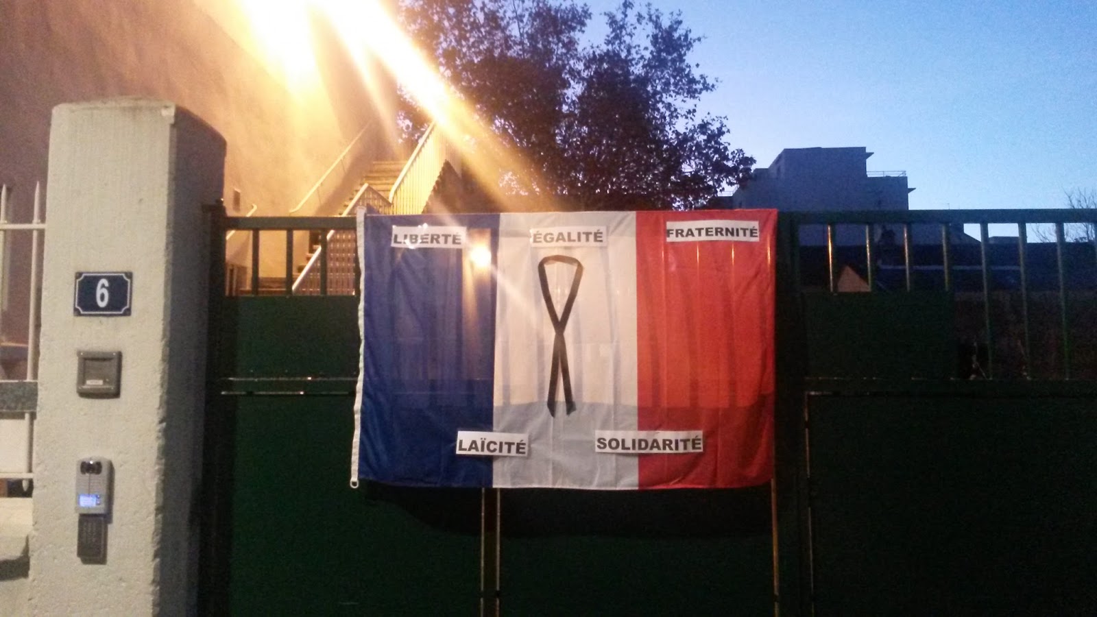 Downtown LyonOnly one work of art, by Daniel Knipper, was installed on the banks of the Saône River, to pay tribute to the victims, with a scrolling list of their names: Lyon’s Homage to Paris attack victims.