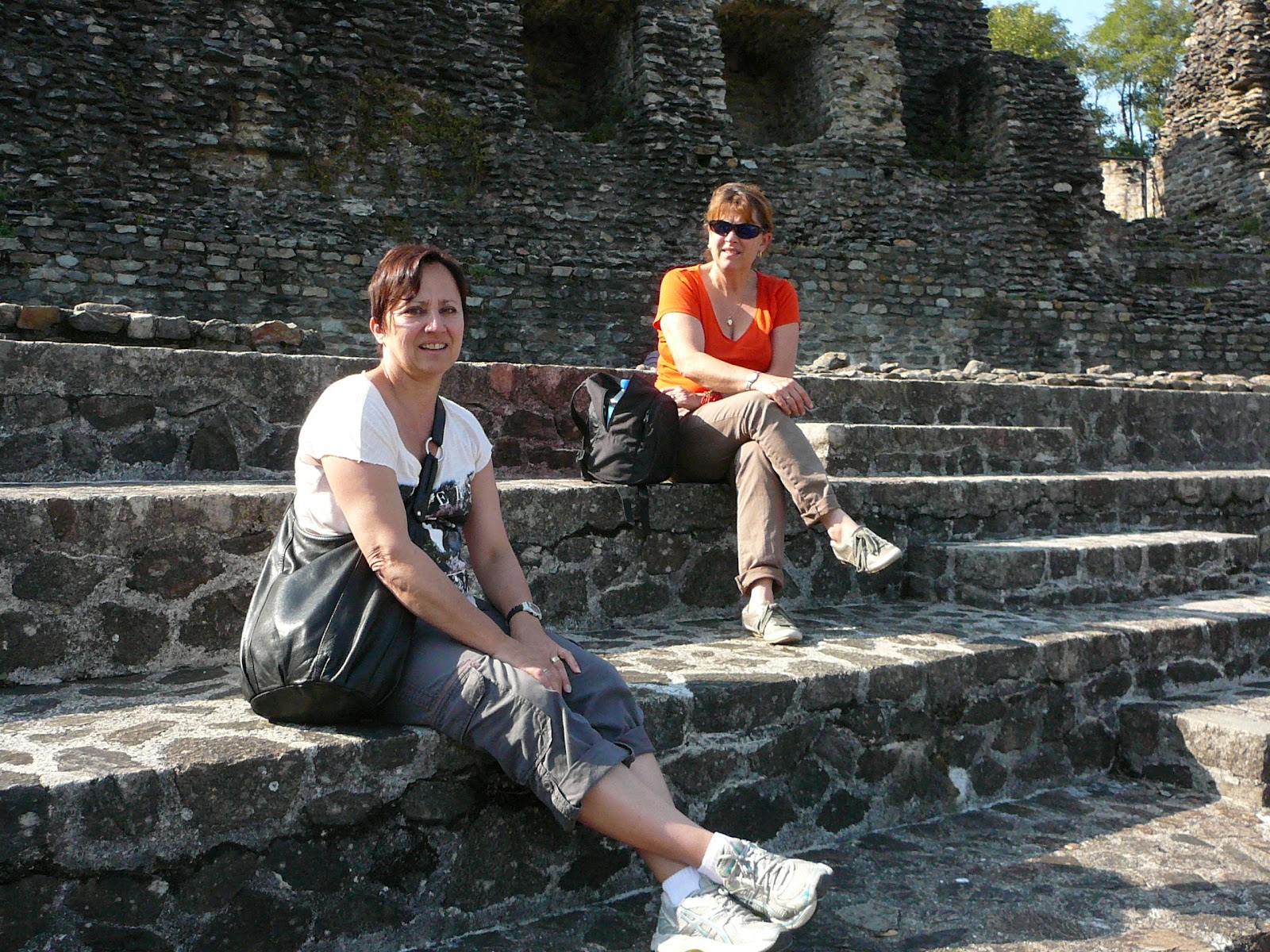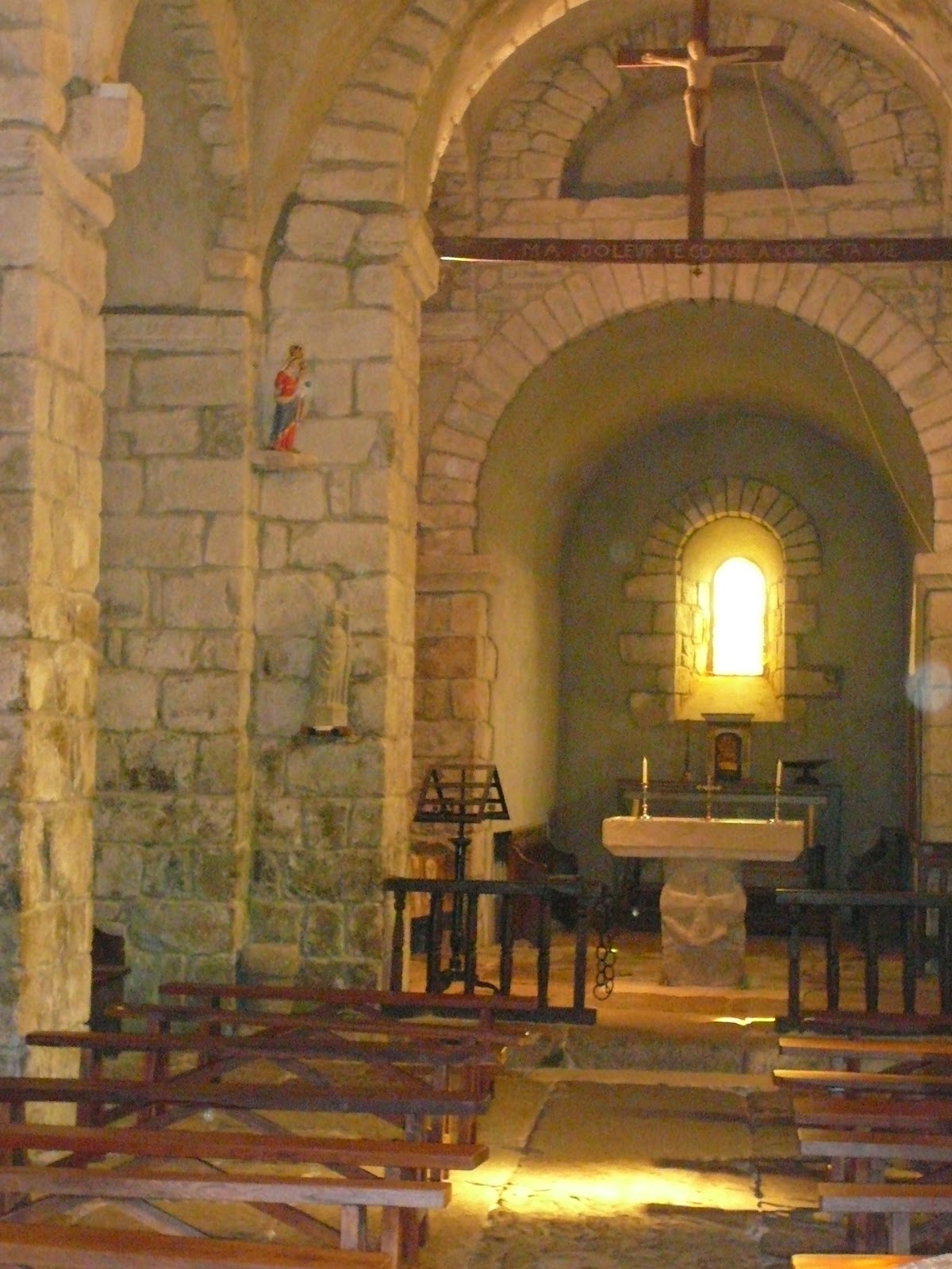 Last Sunday dawned warm and sunny, so we stuffed cheese, saucisson, baguettes and water into the backpack and headed up the track behind the house, into the foothills of the Monts du Lyonnais. After several hours tramping up and down valleys, and through forests, we reached the hamlet of Châteauvieux, with its wide view over the Yzeron valley on one side, and the city of Lyon on the other. Châteauvieux boasts not only a history dating back to Roman times, but also an 11thcentury chapel, which was my real motive for our day-long hike. For this medieval edifice seemed the ideal chapel for Angel of Roses – my current novel, set in this rural area west of Lyon during the 14th century plague years. As I peered into the chapel, I felt that twinge of excitement, anticipation and nervousness, when a story starts to come alive. It was as if, in that dim and dusty interior, I could see the villagers hunched on the straw-covered flagstones, the elderly and infirm lined up on benches along the walls, all eyes on the priest. I could hear the priest telling them that Black Death had come to the village because they were all such terrible sinners, and now they must pay for their sins, and repent. And, from her glorious pedestal, I shivered at the implacable stare of the Virgin Mary.Not a single tombstone is left standing in the cemetery, but as I walked across the grass, the silence broken only by the gentle breeze, it seemed those ancient spirits were still there, crouched in the shadow of the stone walls, watching my every move, guarding their sacred site. I expected to see a wimpled face staring from a cracked, stained-glass window. ‘Who are you?’ she would say. ‘Where do you come from, dressed like that?’ In that instant, I wished for time-travel. I’d have loved to have been in their midst, experiencing their life and times, first-hand. But only for a few hours mind, then buzz me back to the safety of the 21st century, thanks very much!We left the chapel to its ancient keepers and their secrets, and continued on up the hill towards the village of Yzeron, calling in on some old friends along the way: