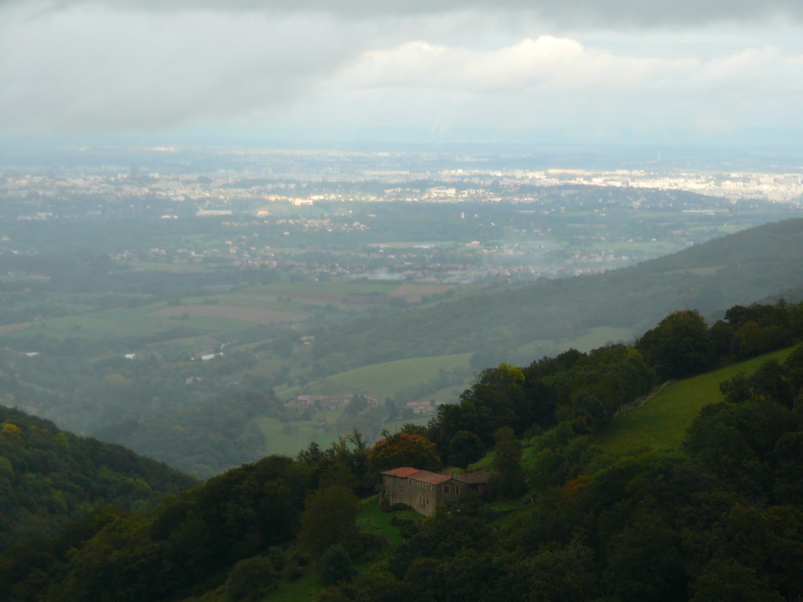 As I headed towards this historical society stone building, admiring the panoramic view across the Yzeron valley to the city of Lyon, it was obvious autumn had sneaked up on me again while I wasn’t looking. In this rural heart of the Monts du Lyonnais, flame, mustard and crimson-coloured leaves almost outdid the green, and I drew my cardigan around me against the damp nip in the air.