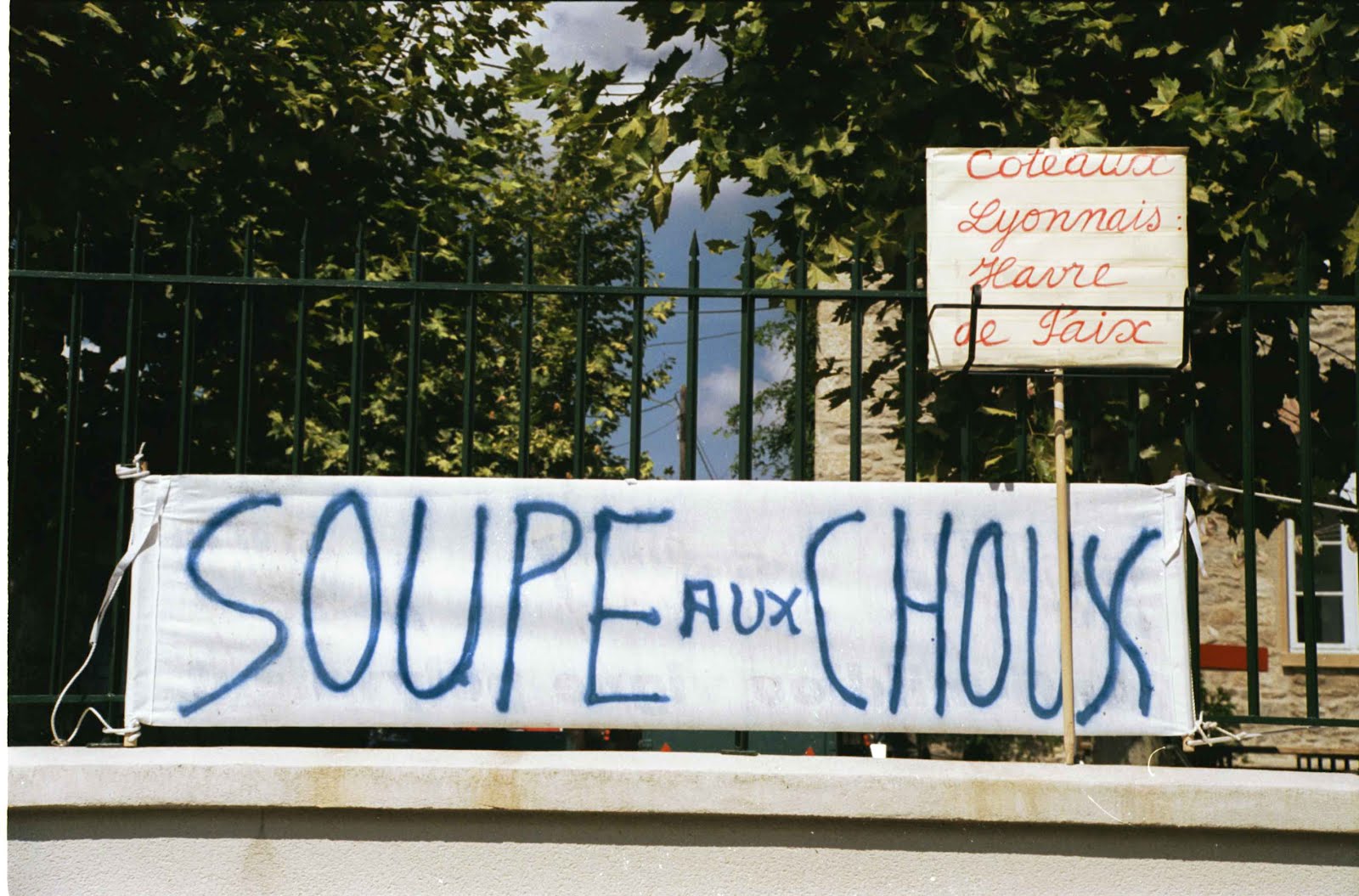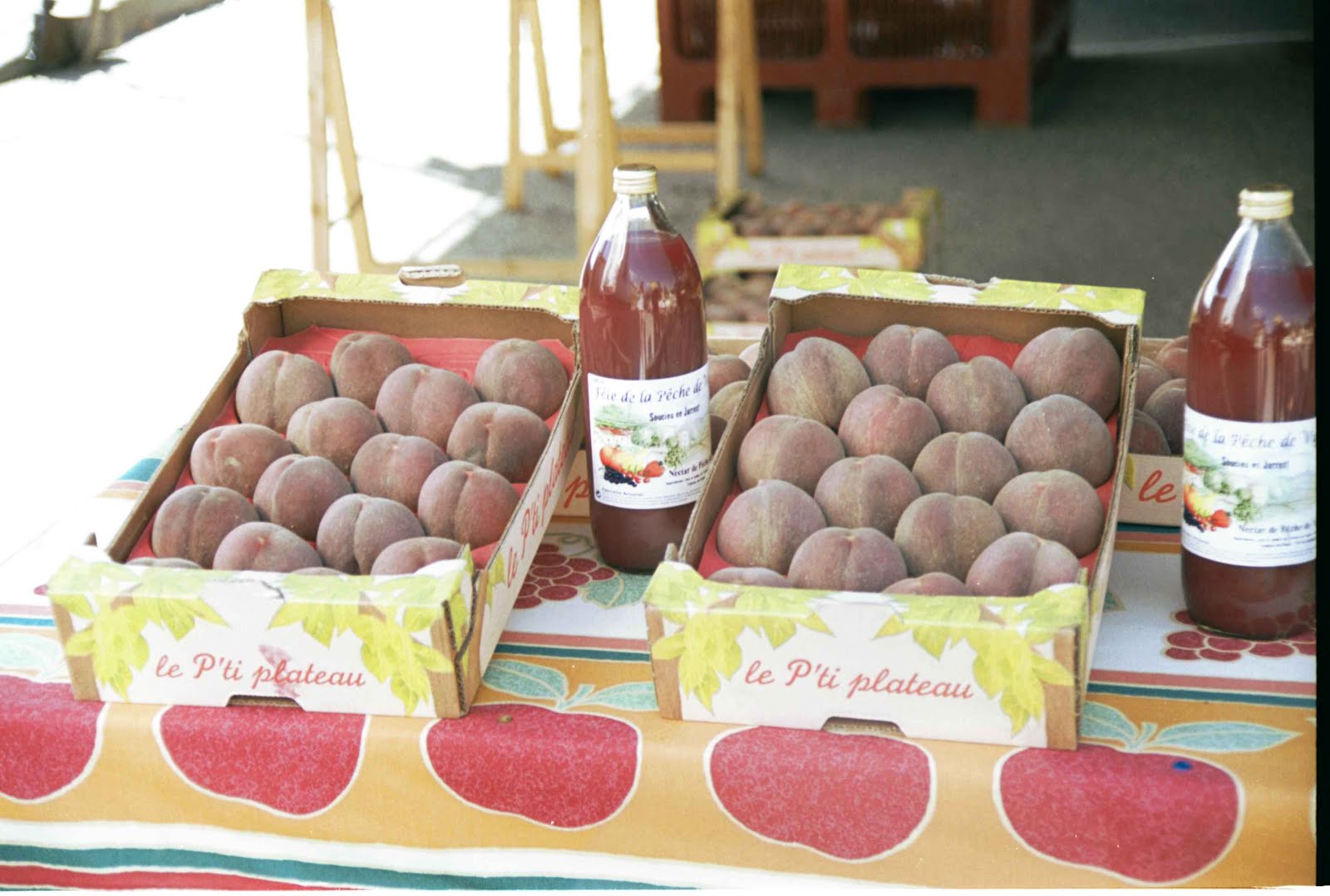 Ruins of the fortified stone wall lost in the revolution, and a sign advertising soupe aux choux, herald the village entrance. Fearing a revolution of the intestinal kind, I decline the cabbage soup and head for the fruit, past tractors and harvest equipment––reminding me that this is, essentially, a farming community.