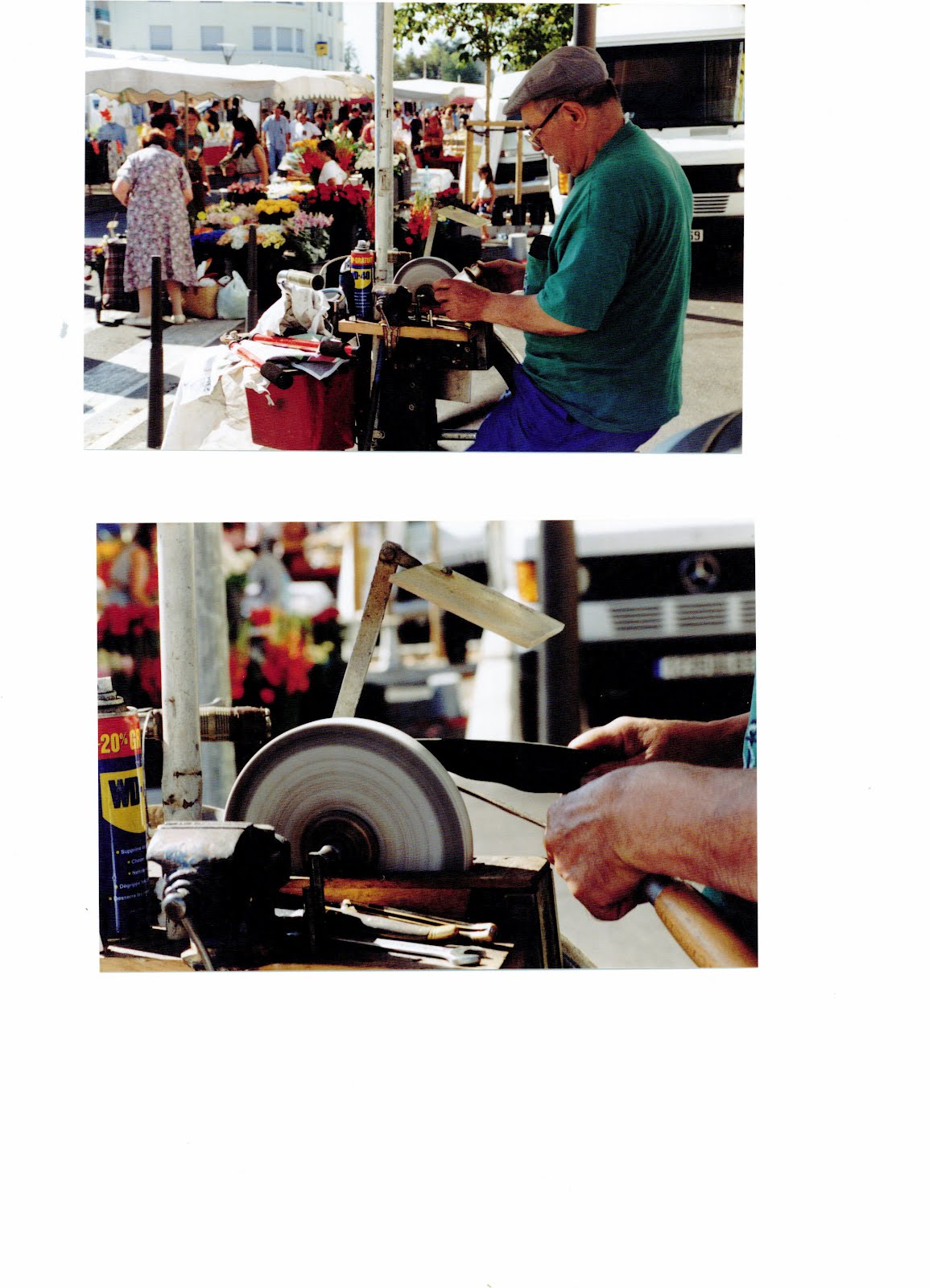 George’s trade lived until the middle of the 20th century until the quality of steel and its treatment meant there was less call for sharpening. Indeed, in today’s technological era, I wonder if Georges truly makes a justifiable contribution to his income. But the continual dribble of customers throughout the morning, at an average of 4 euros per item, answers my question.