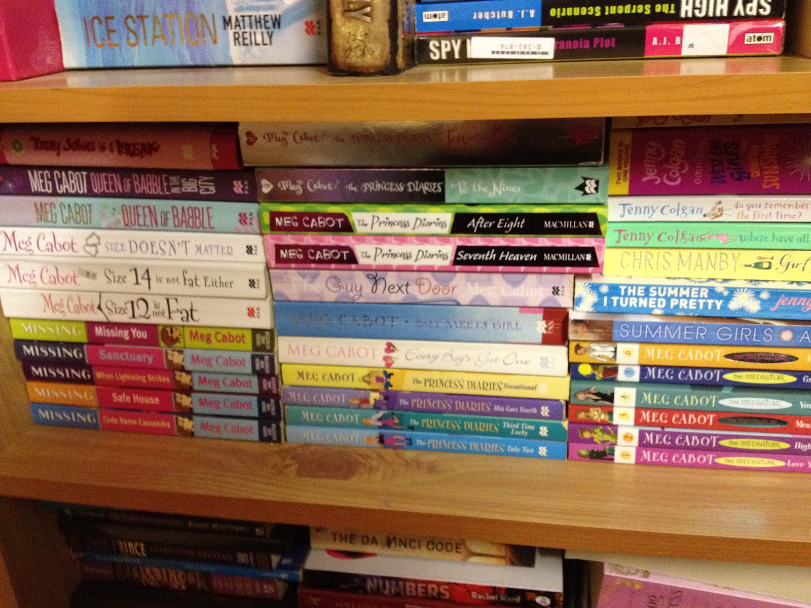 (I had to put them sideways because I couldn't fit all the books on the shelf)