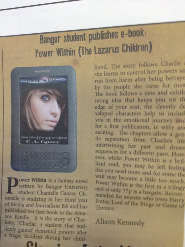 Look below for an interview I had with author C.L. Causer!Me: How did you become interested in writing?C.L.: I dreamt of being in every career by the time I was twelve. From a marine biologist to an expedition adventurer. I knew I would never be any of these things (my imagination was a little uncontrollable then), but it didn’t stop me from imagining and making up stories and writing about them. As I got older these stories I wrote got bigger and I realized that it was the writing part that I loved. These world’s I created became my refuge.Me: How did you come up with the idea for Power Within ?C.L.: There are loads of films, comics, and TV shows like, X-men and Heroes , that revolve around people with superpowers, but I couldn’t find any fictional novels about it. I knew it would be something I would read, and so began the writing…