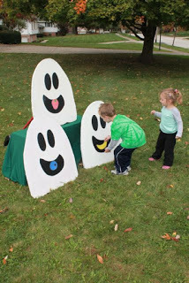 Every day of October I have been moving three ghost friends around our yard when my daughter is at preschool. Today, I didn't have time to move them so I said to her, "The ghosts didn't move today. They said they are hungry."