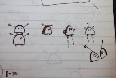 First, it was doodles of robot-like ghosts with wheels, which had me leaning toward the idea that three ghost friends would collect toys called Boo-Bots.