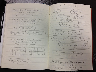 So, I had the idea of unique flying robot-like toys that would appear in visual patterns for young readers to count. However, I didn't have a story. The idea sat in my journal and notebooks and occasionally rolled around in my head.