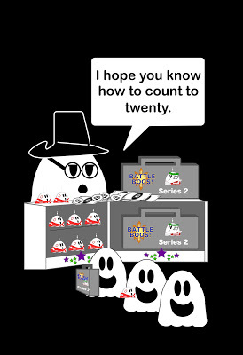 Three ghost friends collect Battle Boos. They acquire them by buying them at the B.O.O. Spookz Toy Store with boo bucks they saved in their pumpkin bank. They would share the collection of 21 unique Battle Boos that are numbered from 0-20. The Battle Boos fly, zoom, and attack and as an added bonus they teach three ghost friends how to count to twenty when they didn't think they could do it.