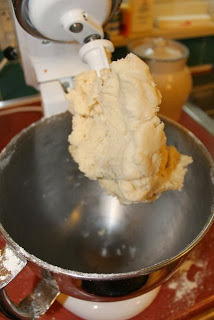 The dough should look like this. Scrap the dough off the mixing paddle into the bowl.