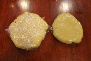 Divide the dough in half on top of two pieces of plastic wrap and flatten. Then, wrap the dough completely and store in the refrigerator for at least 2 hours.