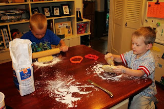 My little helper in the background working hard with his dough.