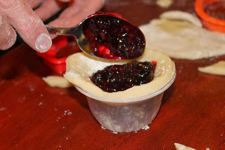 I really don't think this is completely necessary, but I used a plastic container to give the bottom piece of the dough an indentation to place the berry filling.