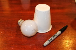 An old light bulb and a paper cup. That is what I wanted to use to make my ghost.