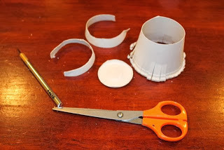 I cut off the bottom of the cup and then trimmed the height until it fit around the light bulb the way I wanted. Do not trim too much because the end of your light bulb will stick out the bottom.
