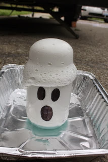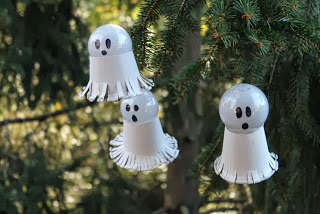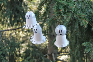 I started making a list over the summer of ghost crafts that I wanted to make this Halloween season. One of the first ideas I wrote down was "Light bulb Ghosts" after I had changed a light bulb in our house and couldn't throw it away. I thought, "There must be a way to turn this into a ghost."