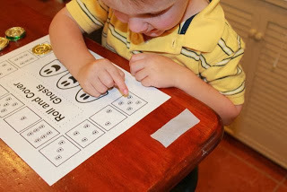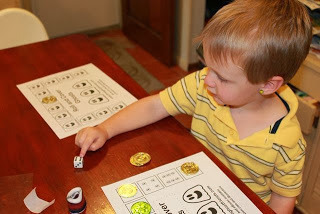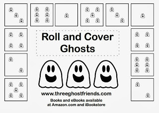 If your child masters the game boards above, then trying rolling two dice. This game board has numbers 2-12 in the ghosts' mouths.Click Here to Download the ROLL AND COVER packet that includes instructions.