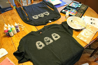 My family received many compliments on our ghost t-shirts during our time at the Earth Fare Community Block Party. I wanted to share with you how we made them so you could make your own ghost t-shirts for Halloween.
