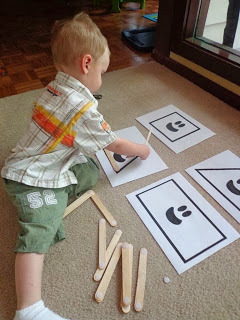 He is still developing his imagery of numbers 4-6. Here he is counting 5 on the game board.