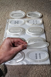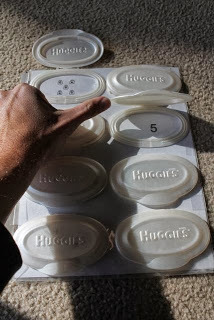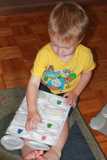 One month ago I posted instructions on how to make a "Lift and Find" matching game by repurposing baby wipes packaging lids. (Click here to read that post).