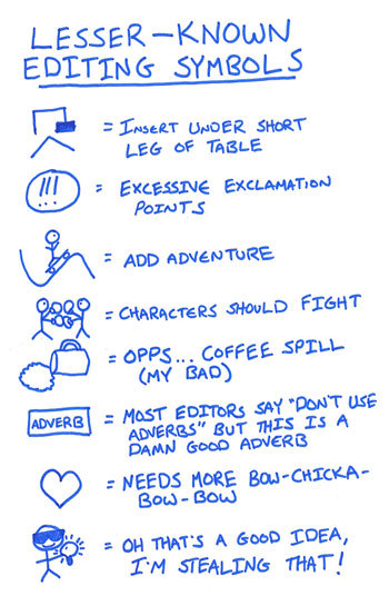 I have an amazing copyeditor. I’m just finishing up working through all the (many, many) edits she had for me. All I can say is she may have used some of these symbols for me … especially the third one.