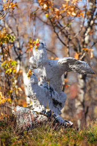 Here are photos of some animals, made in stone, at Kjørstad, Eidsfjord, Vesterålen. It's a 40 min drive from my home. You can see cormorant bird, cow, eagle, fox, puffin, black grouse, seagulls, a stone church, a stone man, and a turtle.