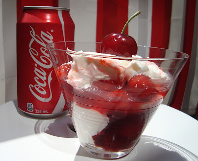 Dissolve JELL-O in boiling water. Add Coke and allow to thicken slightly. Stir in cherry pie filling and pineapple. Chill until set. Beat cream cheese. Add icing sugar. Fold in Dream Whip. Put on top of JELL-O. Decorate with cherries.