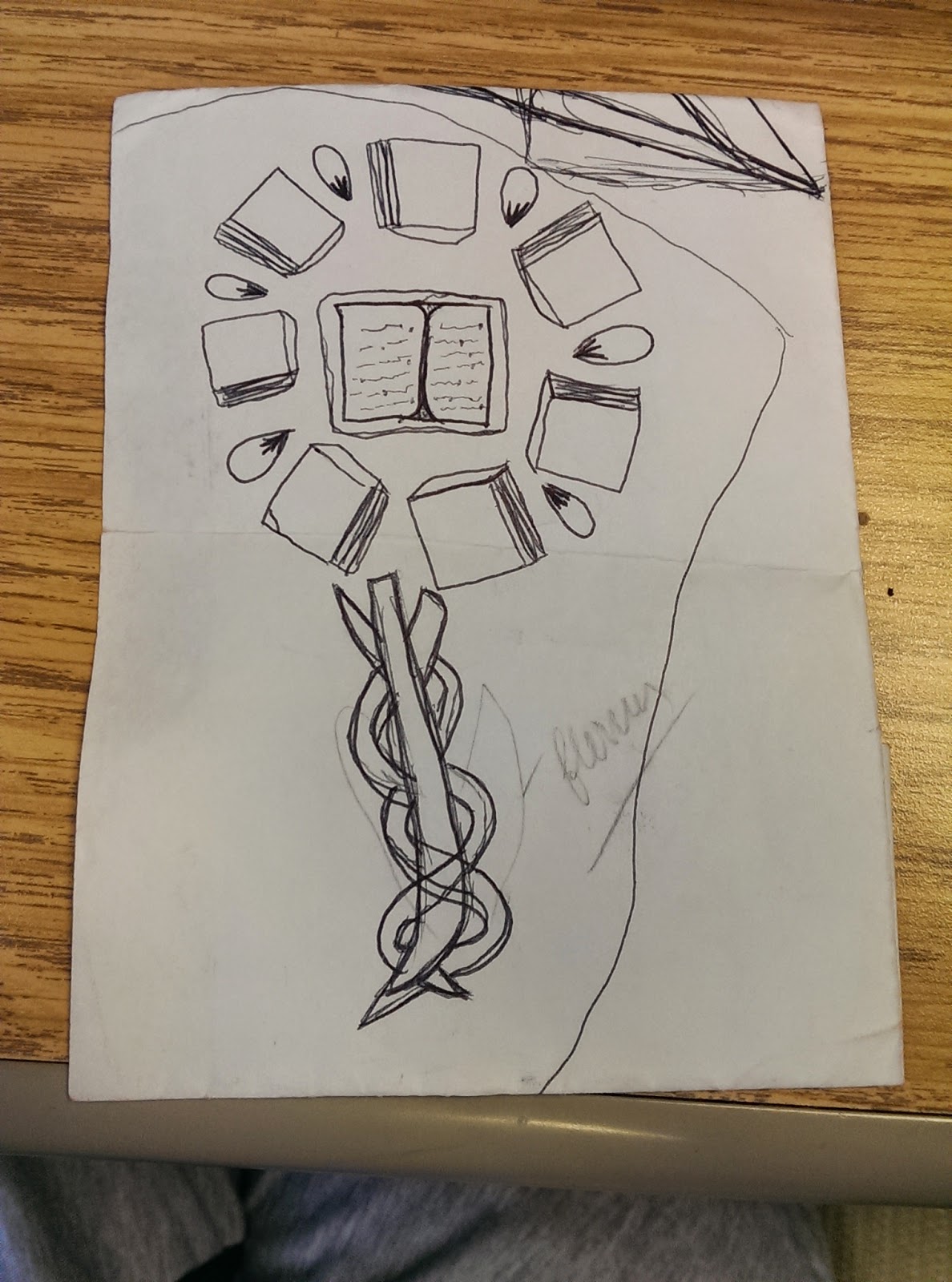 Allee's Quick RenditionMy beautiful and talented 14 y/o daughter, Alexandrea, drew me a quick rendition of what I wanted. She captured my vision well and I was so ready to see it in color. A friend has some beautiful portrait tattoo work on his arms, and he referred me to his artist, Kayden DiGiovanni, of Dallas Tattoo. Kayden used Allee’s image and created a beautiful and lasting doppelgänger of what I think my writing means.