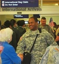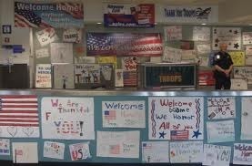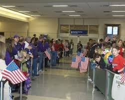 While waiting, I noticed a large dedication area and a television replaying the arrival of many US troops that came home from long tours overseas. I knew many volunteers gathered for the arrival of US troops, but, until I read the information in the dedication area, I had no idea what an amazing and grand scale the project at DFW really was. http://www.dfwairport.com/heroes/I found more about the program history here: http://www.ntc-dfw.org/meet_troops_dfw.html“In June 2004, Dallas/Fort Worth International Airport, the Colleyville Chamber of Commerce and the North Texas Commission launched the Welcome Home a Hero program to greet U.S. troops returning for two weeks of rest and recuperation. What began as a modest effort to honor our soldiers became an outpouring of community support to demonstrate gratitude to the men and women in uniform.”( From NTC.DFW.ORG)And, check this out http://www.tsa.gov/press/happenings/dfw.shtm in 2007, DFW Intl reached a milestone by welcoming home 500,000 arrivals- all greeted by flags waving, homemade signs flashing, cheers roaring, laughter ensuing, and tears flowing. Yes, it was THAT awesome.