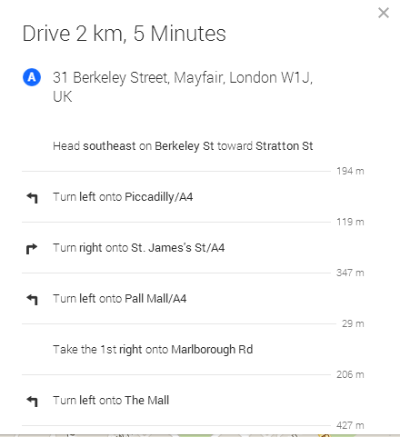 (6) There is also the "Directions" tool. Click on the tool (see 1) and then pick any two red place-markers and a line will appear. Information about the direction will appear on the left.