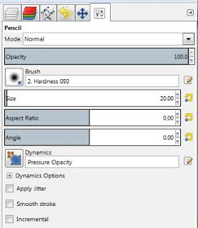 (1) If you haven't done so already, create a new image layer (ctrl+n). Now, select the pencil tool (it looks like a pencil). You can see from the photos below, there are a lot of options available to draw with. We will examine some of the more interesting features.