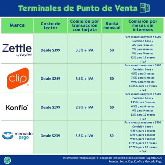 Como te decíamos, existen varias opciones en el mercado, nosotros te mostramos cinco: Zettle, Clip, Konfío, Mercado Pago y Sr. Pago. En la tabla incluimos el costo del lector -hay compañías que tienen varios, algunos más complejos y de mayor precio-; la comisión por transacción con tarjeta, recuerda que incluye el IVA; la renta mensual, que como te dijimos es de $0, y los montos para meses sin intereses.