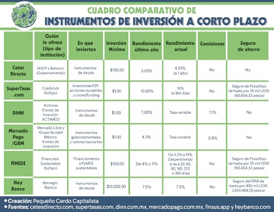 La entrada ¿Cuál de los instrumentos de inversión es el que más me conviene? | Cuadro comparativo: Cetes Directo, SuperTasas, DINN, Mercado Pago, FINSUS, Hey Banco aparece primero en Pequeño Cerdo Capitalista.